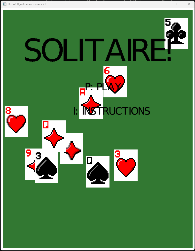 A solitaire game I built in high school. Built using the C++ CImg library to add graphics to the screen and capturing keyboard input to control the game.